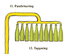 12. Tappningen Det färdiga ölet tappas på burkar, flaskor och fat. |