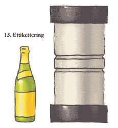 13. Ettikettering Till sist sätts ettiketterna på flaskorna som packas för distribution. |